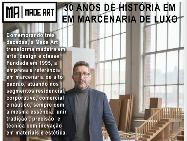 Confira nossa participação na Joy Revista Edição nº 30 especial Náutica. A Made Art celebra 30 anos de história na marcenaria de luxo, consolidando-se como referência em alto padrão, design e precisão técnica. Fundada em 1995, a empresa construiu sua trajetória transformando madeira em arte, sempre unindo tradição, inovação e excelência em cada detalhe. Atuando […]