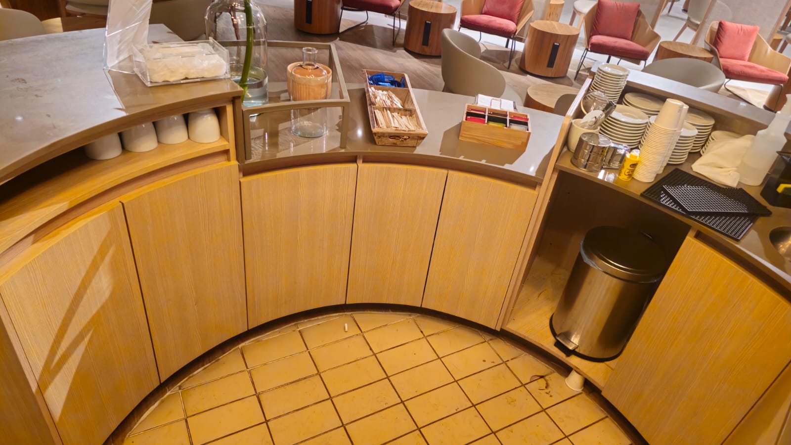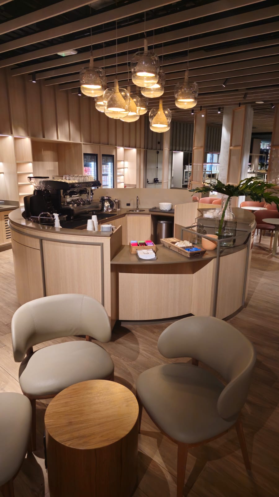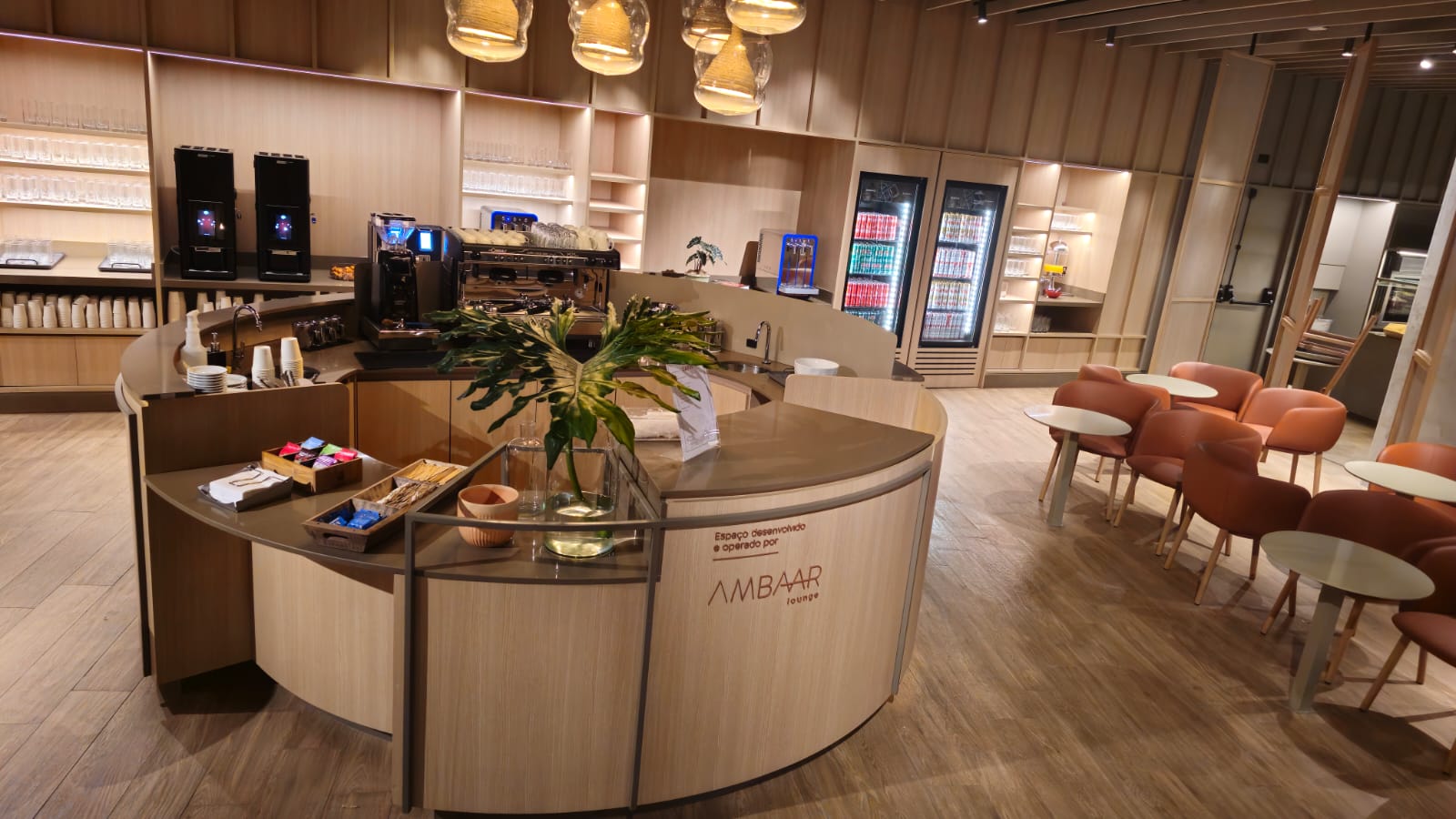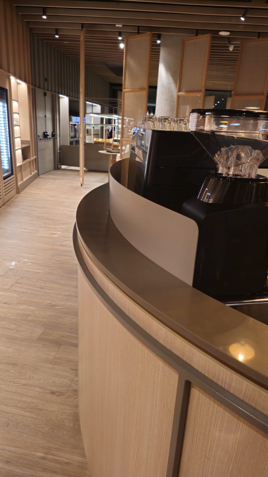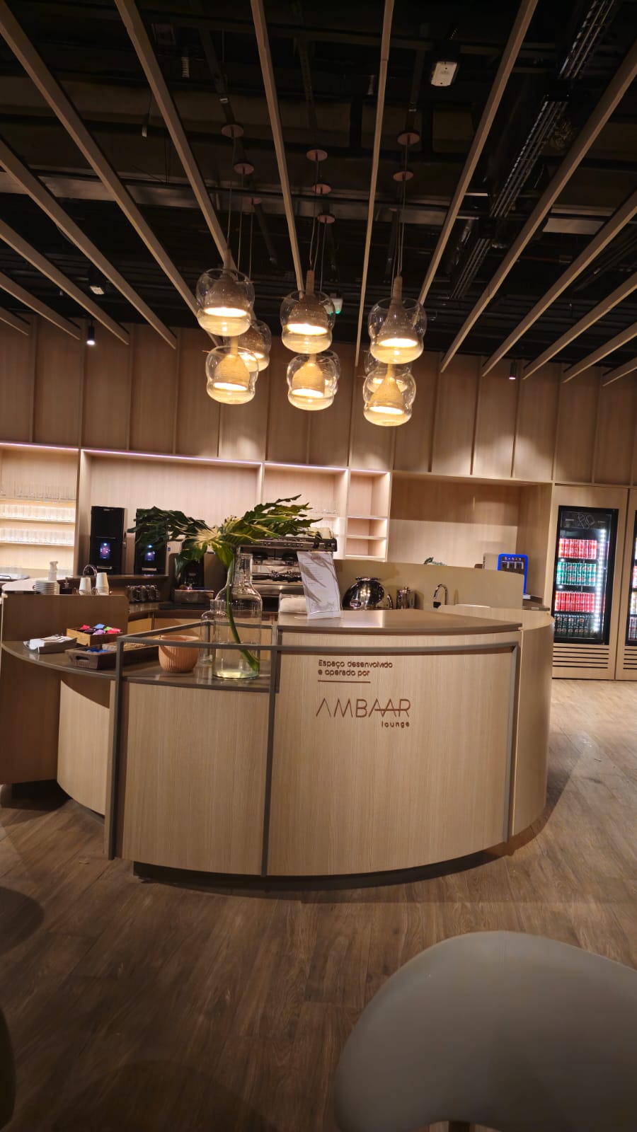 O quiosque redondo combina marcenaria refinada e engenharia de alto desempenho. Estruturado em MDF com acabamento Carvalho Malva, detalhes em metalon e tampo em pedra sintética de alta resistência, o projeto foi desenvolvido de forma integrada com as equipes de engenharia e marmoraria. Executamos gabaritos técnicos que definiram pontos de elétrica e hidráulica com exatidão, garantindo execução simultânea e prazos otimizados.
