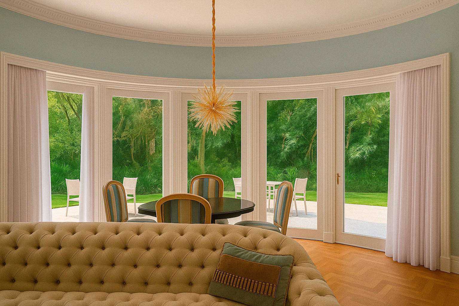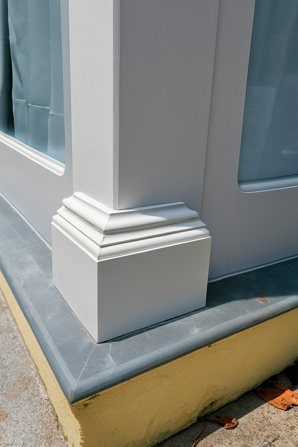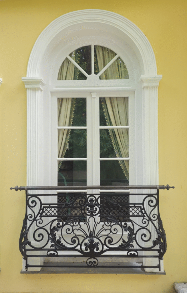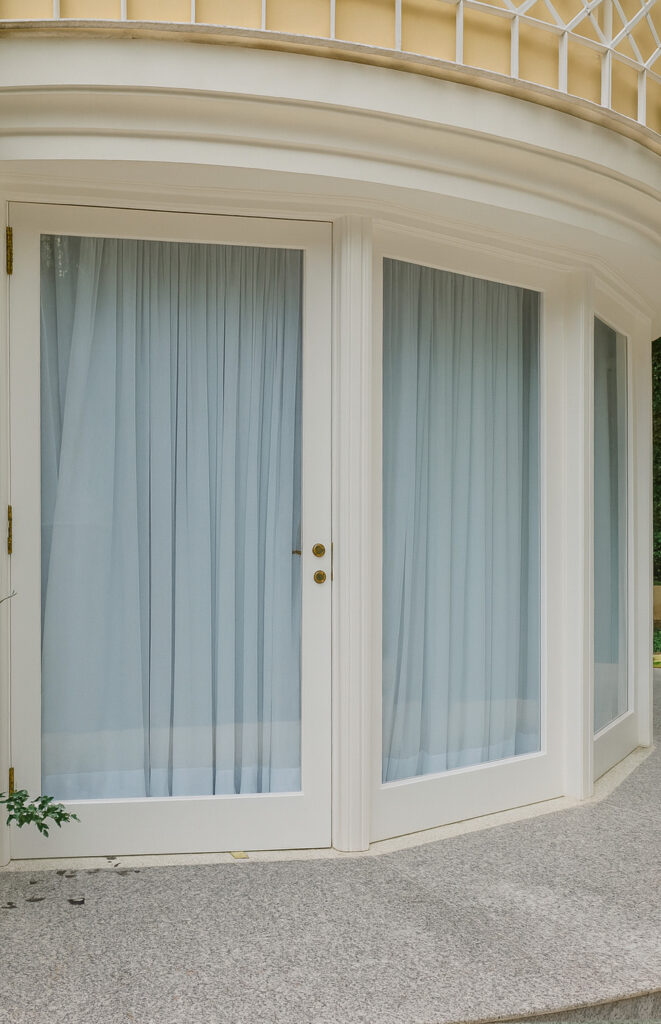 Em seguida, iniciamos a substituição completa das esquadrias originais, comprometidas por deterioração, cupins e formigas. Cada nova peça foi produzida em madeira Cumaru, criteriosamente selecionada, seca em estufa e tratada com proteção antipragas, garantindo longevidade superior. Para manter fidelidade à arquitetura, replicamos fielmente os perfis, curvas e proporções originais, aplicando pintura branca náutica para máxima resistência ao tempo. Complementamos o conjunto com vidros laminados de segurança e restauração artesanal das ferragens, devolvendo nobreza ao conjunto.